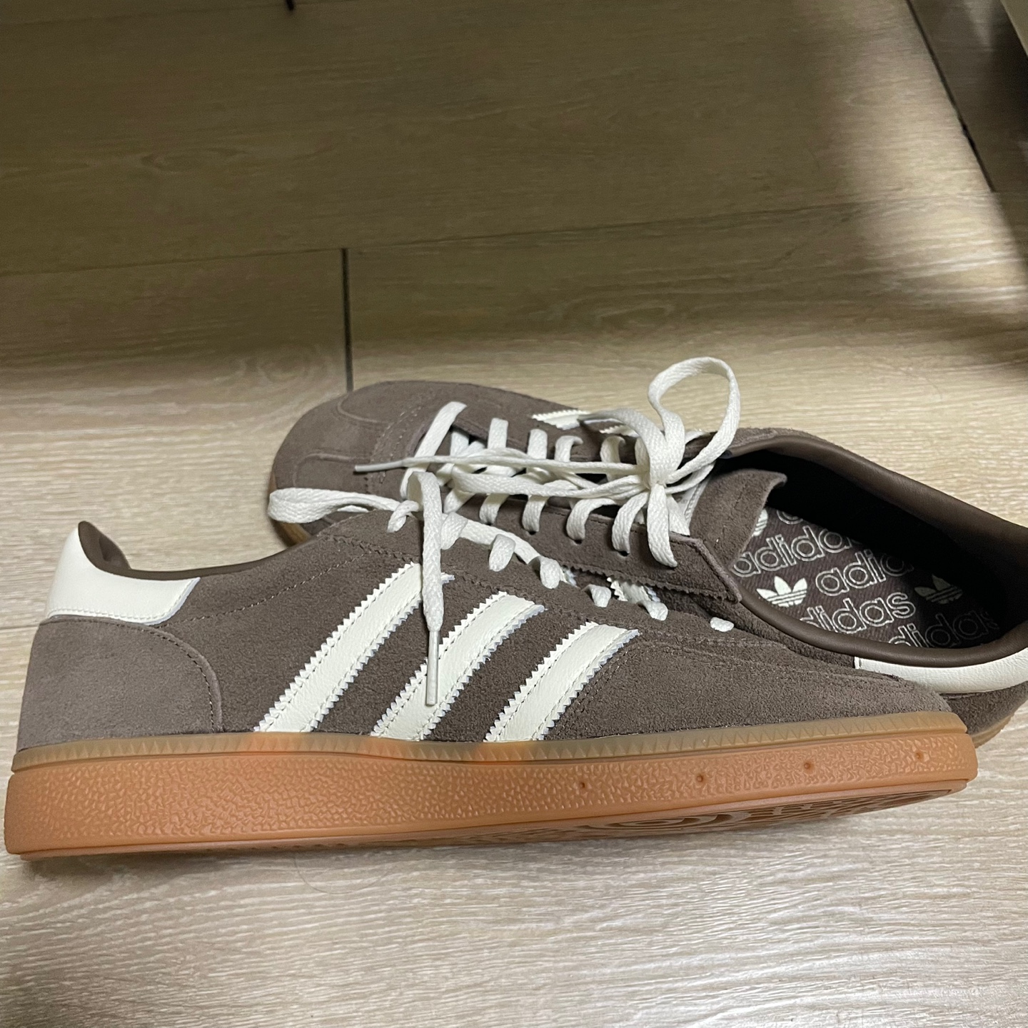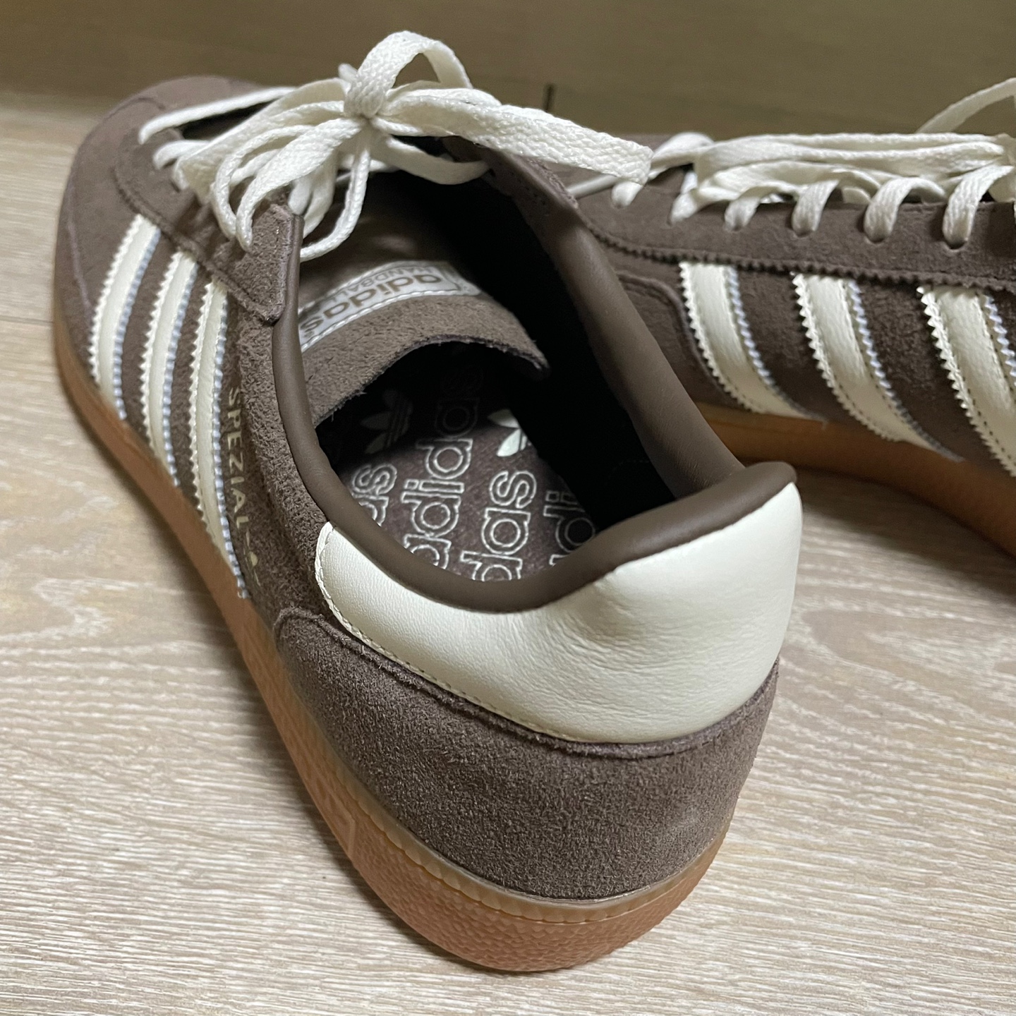 평소에 클래식한 스니커즈를 좋아하는 편인데, 이번에 새로 장만한 신발은 아디다스 핸드볼 스페지알 브라운:화이트(IF6490) 입니다.