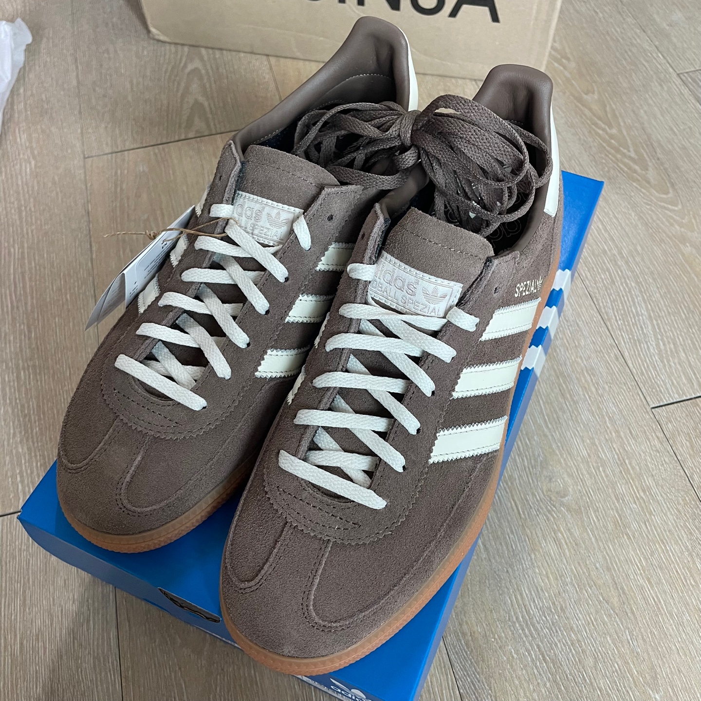 박스를 열어보니 아디다스 특유의 블루 박스가 들어있었고, 그 안에는 제가 고른 스페지알 브라운:화이트 컬러가 자리하고 있었습니다.